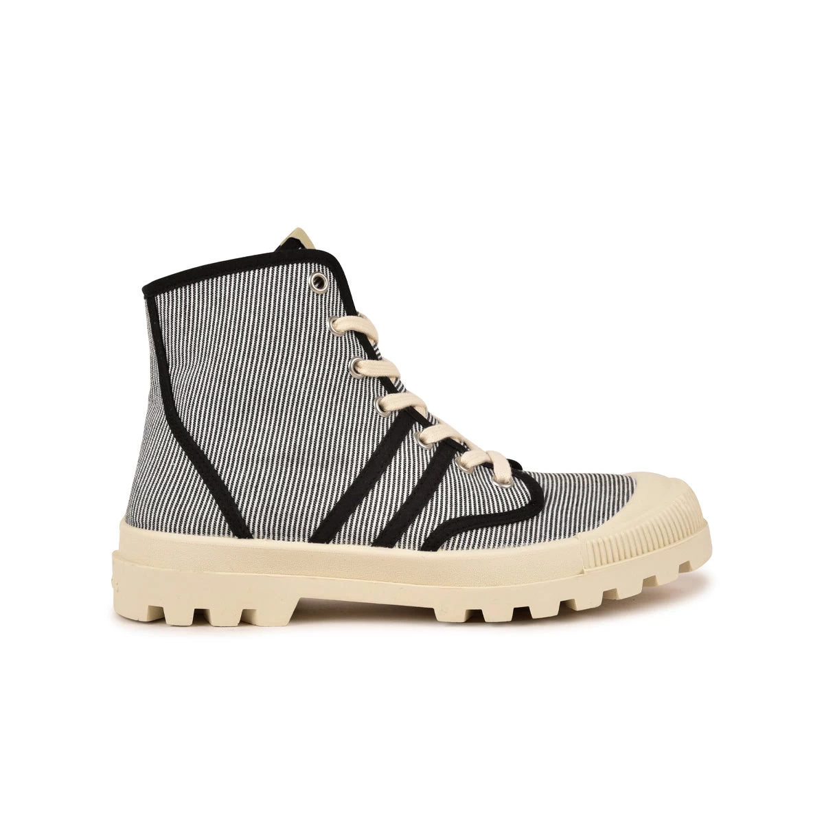 DĂ©couvrez la version de la boots Authentique, notre chaussure en toile iconique depuis 1950. C’est une boots munie d’une tige rayĂ©e noir et blanc trĂšs robuste montĂ©e sur une semelle crantĂ©e flexible et trĂšs souple. C’est une chaussure pensĂ©e et designĂ©e en France puis fabriquĂ©e dans nos ateliers en Espagne.